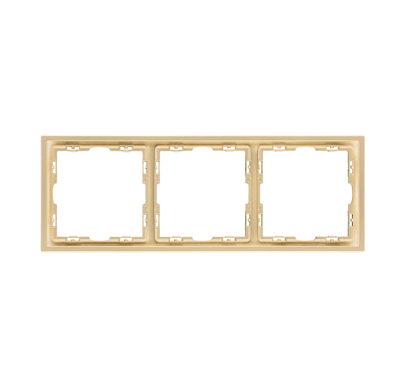 Рамка 3-постовая DK21303 — это воплощение элегантности и надежности в мире электроустановочных изделий. Изготовленная из высококачественного термопласта, она обладает исключительной устойчивостью к деформациям и механическим повреждениям. Специальное покрытие в цвете золото с матовой отделкой придает изделию благородный вид, исключая излишний глянцевый блеск и делая поверхность устойчивой к появлению мелких царапин и потертостей. Использование современных полимеров гарантирует сохранение насыщенности оттенка даже при длительном воздействии солнечных лучей, что делает рамку долговечным элементом декора вашего дома.