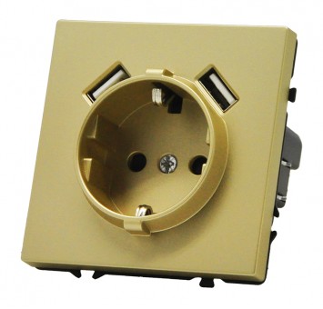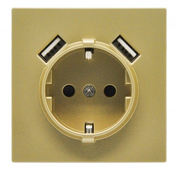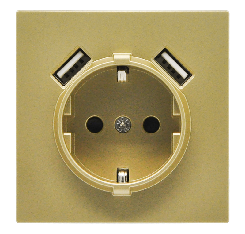 Золотая силовая розетка 16А с двумя портами быстрой зарядки USB Type-A 20W серия Docile Klemme DK15513