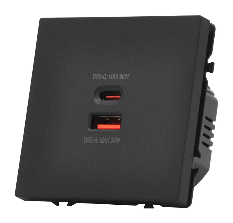 Эстетическое исполнение в глубоком чёрном матовом цвете превращает этот технологичный узел в стильный элемент современного интерьера. Шелковистая матовая поверхность не только приятна на ощупь, но и крайне практична: она эффективно скрывает отпечатки пальцев и не создает бликов под направленным освещением. Такие компьютерные розетки и зарядные модули отлично подойдут к уникальному стилю вашей квартиры или дома, позволяя организовать функциональное рабочее пространство в единой дизайнерской концепции, избавляя стены от нагромождения внешних блоков питания.