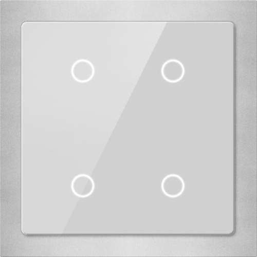 Сенсорный выключатель на 4 кнопки серебро Сочетание стеклянной панели и литой алюминиевой рамки. Каждая кнопка имеет LED индикатор. Управление светом, шторами, сценариями. Передача значений (освещённость и др.). Монтаж: в коробку 86*86мм, или D=60мм. Арт.: CHTB-04/01.2.22