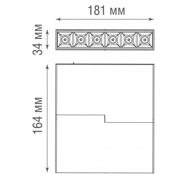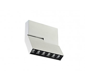 Источник света закрыт декоративной решеткой виде рефлектора, изготовленой из глянцевого пластика. Конструкция рефлектора подавляет блики, а зеркальная поверхность отражателя увеличивает светоотдачу. Светильник поворотный на 90°. Дает направленный свет. Корпус изготовлен из алюминия. Цвет корпуса черный или белый.