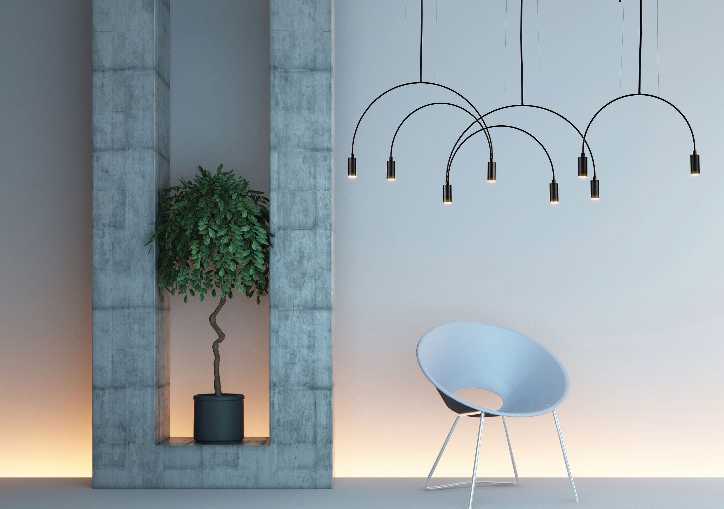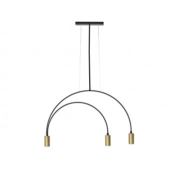 Элегантная коллекция включает в себя два подвеса и бра. Черный матовый металл каркаса подчеркивает изящную геометрию формы. Металлический патрон выпускается в цвете шлифованная латунь. Тип крепления – планка.