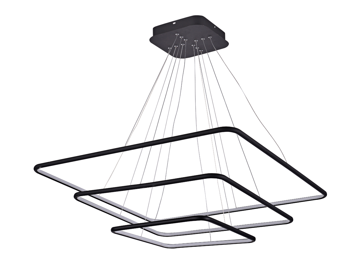 Серия тонких контурных подвесных светильников. Толщина контура всего 15мм. Внутри установлена диодная линейка, засвечивающая светильник равномерно по всему периметру. Рассеиватель из силикона обеспечивает мягкое свечение. Тросы подвеса регулируются независимо друг от друга, что позволяет создать интересные графические эффекты, установив контуры под углом (с помощью разной длины троса в узлах креплений). В серии представлены одиночные, двойные и тройные квадраты различного размера. Корпус изготовлен низ алюминия, окрашен в белый или черный цвет. Источник питания в комплекте.