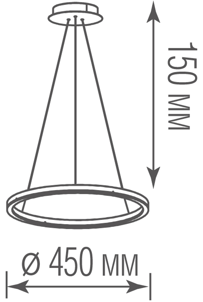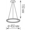 Кольцевой светодиодный подвес диаметра 450 мм. Корпус изготовлен из алюминия, окрашен в белый цвет. Возможна покраска корпуса в любой цвет палитры Color Panorama®. Источник питания в комплекте. Под проект возможно изготовление светильников большего диаметра.