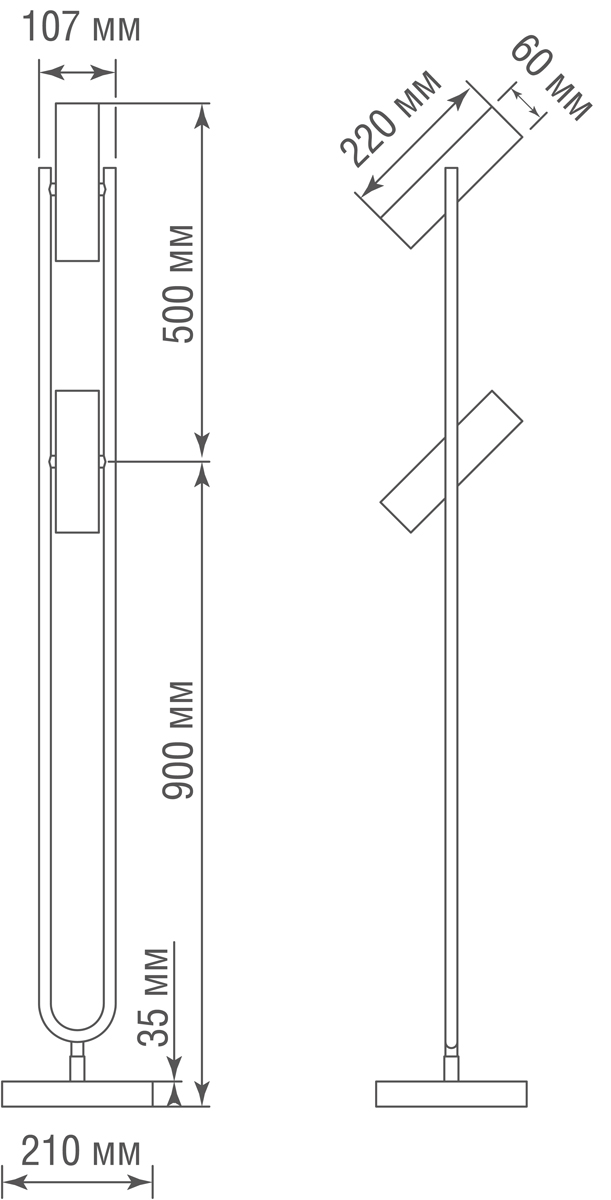 Минималистичный торшер из окрашенного металла. Два источника света, выполнены в форме цилиндров и укреплены на рамной арматуре. Цилиндры поворачиваются на 180°, что позволяет создавать как акцентное, так и общее освещение. Внесет модную лофтовую ноту в любое помещение.
