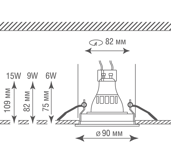Диаметр монтажный (встраив.): 82 мм