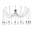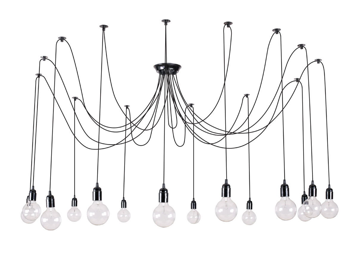 Потолочная люстра в лофтовом стиле. Независимые источники света крепятся при помощи декоративного крючка в любое доступное место. С помощью такого конструкторского решения, источники света можно крепить не только на потолке, но и на стенах. В ассортименте модификации на 8 – 14 источников света. Тип крепления – планка. Длина провода 1500-2000 мм. Лампа в комплект не входит.